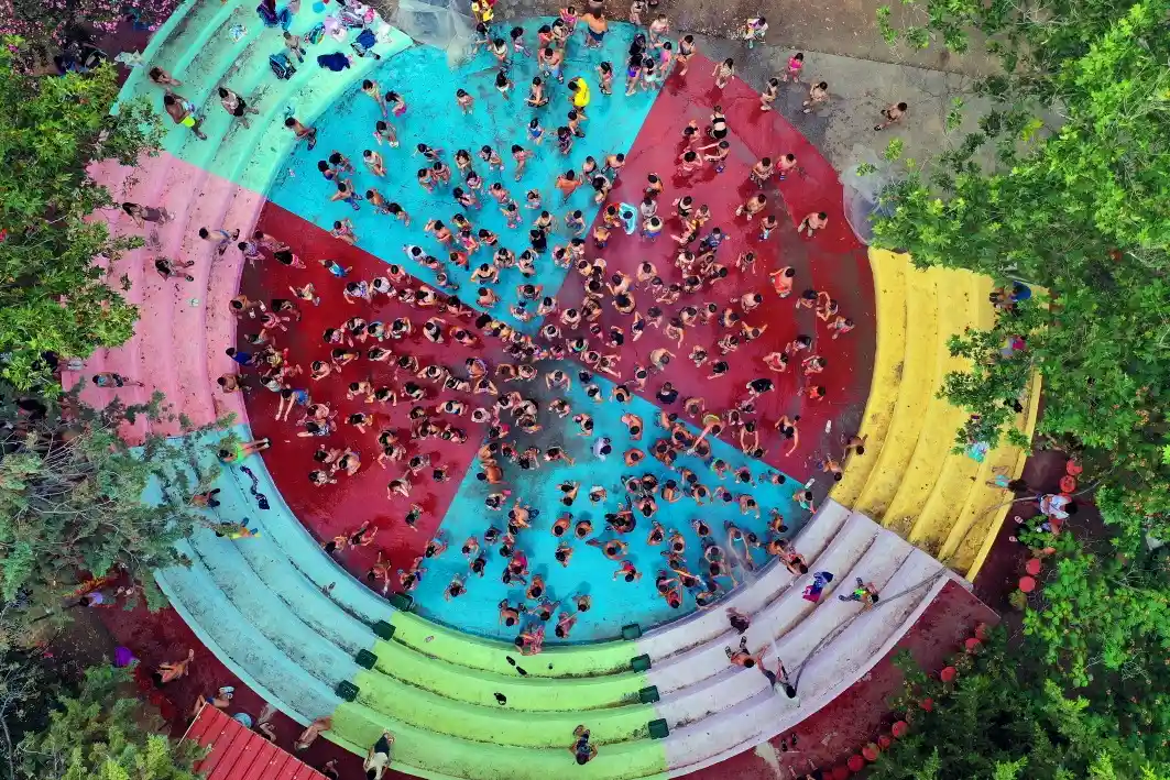 πισίνα ολυμπιακών διαστάσεων με νεροτσουλήθρες (με συνεχή παρουσία ναυαγοσωστών, συνεχή χλωρίωση νερού καθημερινό έλεγχο ποιότητας νερού και τακτικό μικροβιολογικό έλεγχο)
